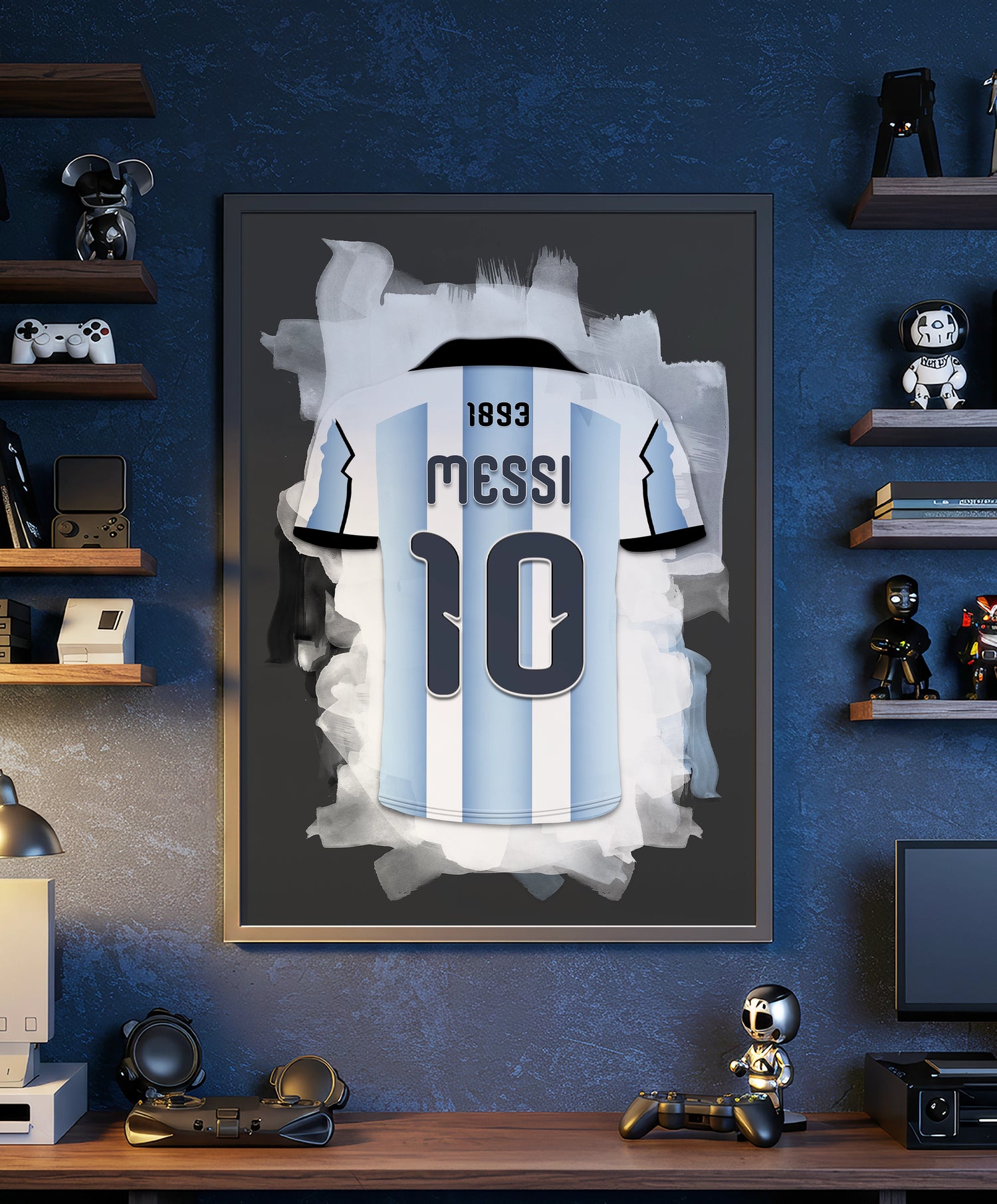 Creëer jouw eigen voetbalwand met unieke waterverf-posters. Personaliseer met je eigen naam en rugnummer en kies een ontwerp geïnspireerd op jouw favoriete clubkleuren.