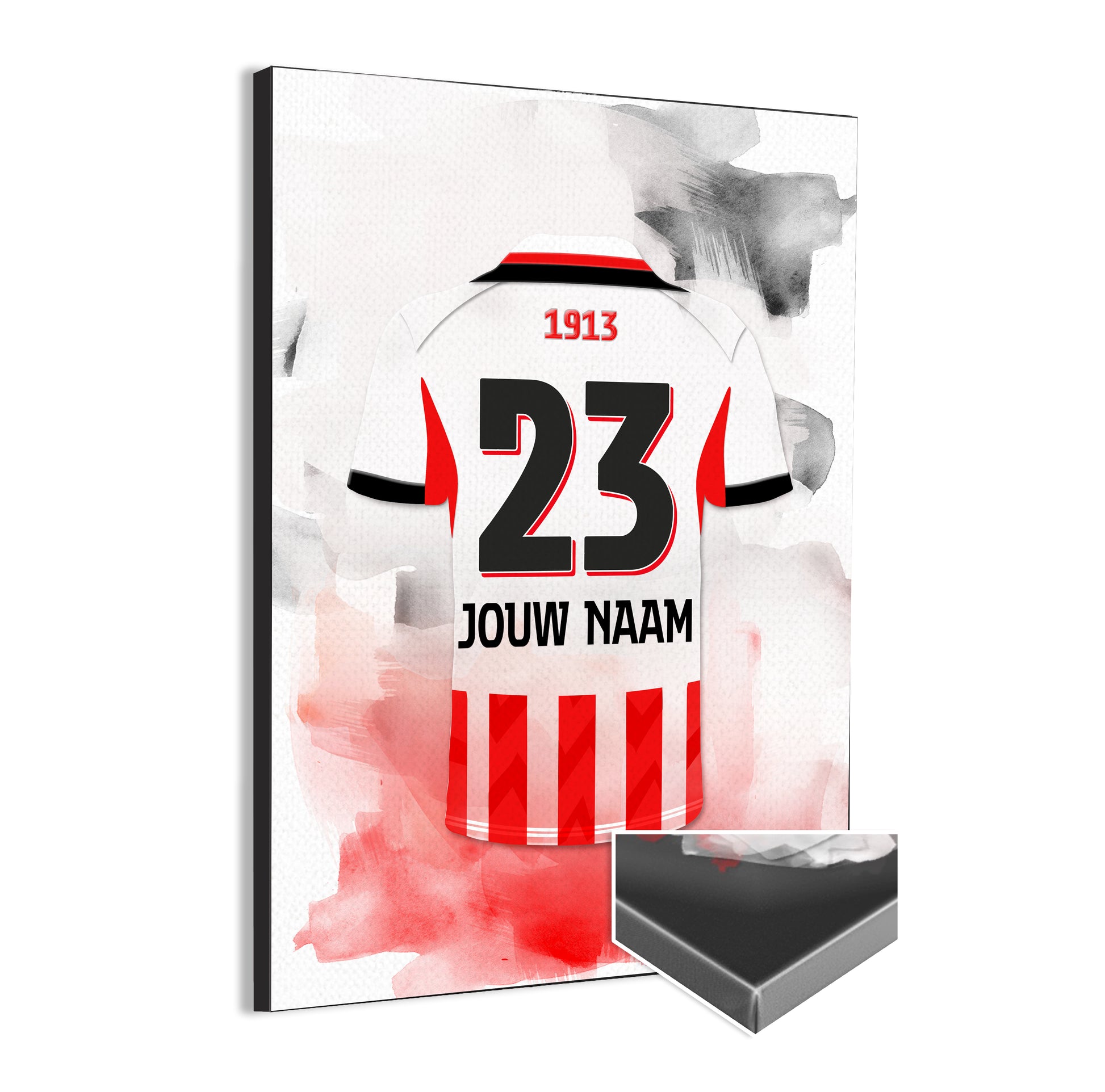 Maak het extra persoonlijk met je eigen naam en rugnummer – ideaal als cadeau voor een echte Eindhoven-fan of als statement aan je eigen muur.